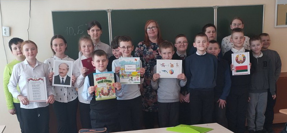 Библиотекари филиала Микашевичская городская библиотека провели в ГУО «Средняя школа №1 г. Микашевичи имени А.В. Зайченко» для учащихся 5 «Б» класса час правовой информации «Главный закон моей страны».
