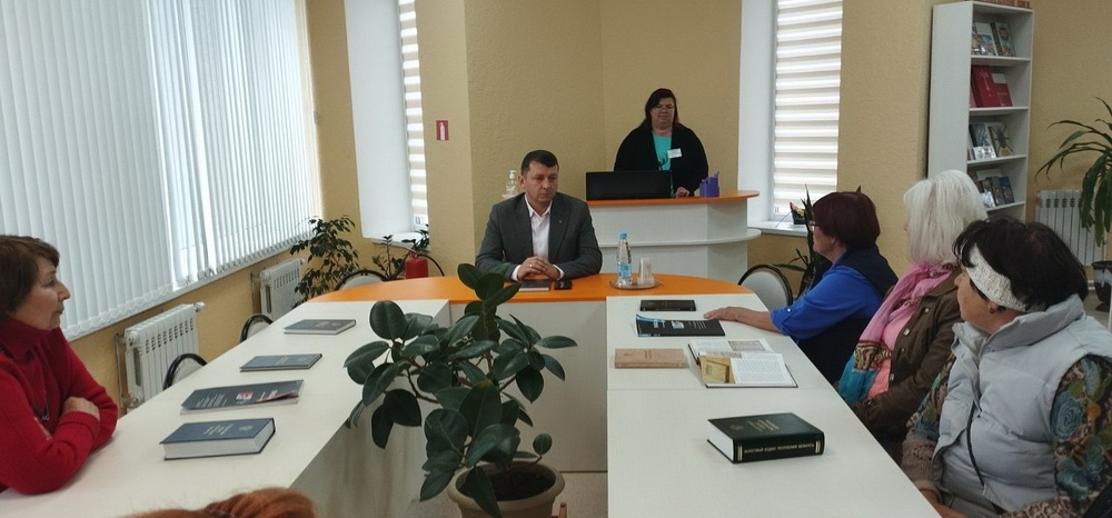 30 сентября в филиале Микашевичская городская библиотека в преддверии Дня пожилых людей в библиотеке прошел вечер-встреча «В гармонии с возрастом» с участием нотариуса Микашевичской нотариальной конторы Кузьмина Олега Фёдоровича. Олег Фёдорович рассказал о работе нотариальной конторы, затем отвечал на вопросы присутствующих, провел индивидуальные консультации. Ответы получились ёмкими, доступными, исчерпывающими. Участники искренне поблагодарили нотариуса за возможность получить ответы на свои вопросы.