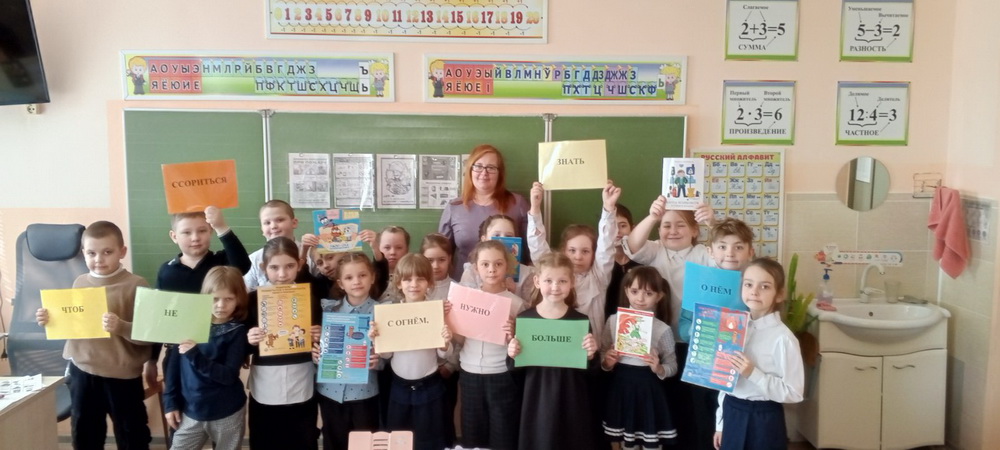 На уроке безопасности ребята узнали о роли огня в жизни человека, о причинах возникновения пожаров, о правилах поведения во время пожара. Все вместе обсудили алгоритм действий при пожаре. В рамках этого мероприятия ребята узнали о добром огне, издавна согревающий нас и помогающий готовить пищу и узнали об ужасном, опасном, злом огне – огне пожара, который, выйдя из повиновения, может уничтожить целую деревню или город, унести человеческие жизни. Во время урока дети отгадывали загадки, играли в игры и участвовали в конкурсах.