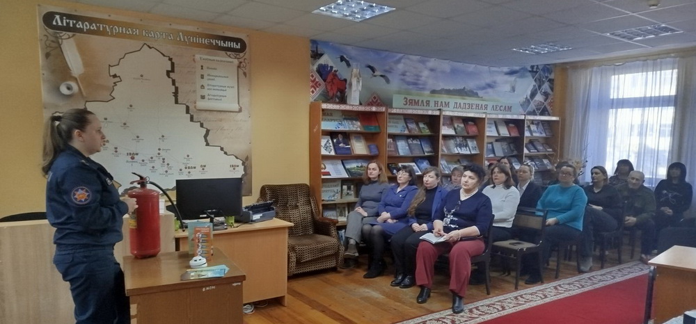 10 марта состоялась профилактическая встреча трудовых коллективов центральной районной библиотеки им. Н.Калинковича и центральной районной детской библиотеки. На мероприятие была приглашена старший инспектор сектора пропаганды и взаимодействия с общественностью Лунинецкого районного отдела по чрезвычайным ситуациям Марина Кочура.