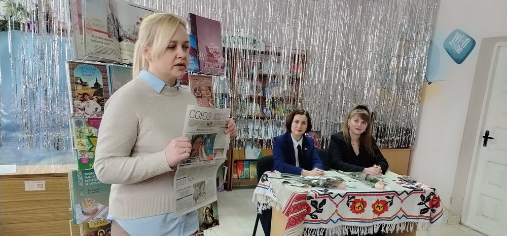 5 февраля в филиале Центральная районная детская библиотека в рамках Года белорусской женщины для учащихся 8″А» класса ГУО «Средняя школа №3» г.Лунинца проведена встреча «Год белорусской женщины: почему это важно для нас?» участие в которой приняли исполняющий обязанности председателя суда Лунинецкого района Светлана Братанова и директор филиала ОАО «Берестейский пекарь» Лунинецкого хлебозавода Людмила Брезина.